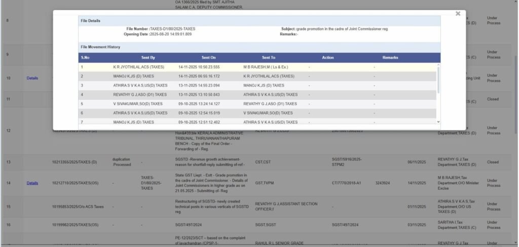 ​ജി.എസ്.ടി വകുപ്പിലെ ജോയിൻ്റ് കമ്മീഷണറുടെ ഗ്രേഡ് പ്രൊമോഷൻ സംബന്ധിച്ച ഫയലാണ് ഇന്നലെ രാവിലെ 10.36-ന് എം.ബി. രാജേഷിന് കൈമാറിയത്. എക്സൈസ്, തദ്ദേശ സ്വയംഭരണം എന്നീ വകുപ്പുകളുടെ ചുമതല വഹിക്കുന്ന മന്ത്രിയായ എം.ബി. രാജേഷിന് നികുതി വകുപ്പുമായി ബന്ധപ്പെട്ട ഫയൽ കൈമാറിയതിലെ അസ്വാഭാവികതയാണ് ഇപ്പോൾ ചർച്ചയാകുന്നത്.