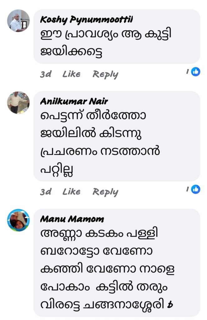 ജനങ്ങൾ രാഷ്ട്രീയ വിമർശനത്തിനപ്പുറം വ്യക്തിപരമായ പരിഹാസങ്ങളിലേക്കും കടന്നു. ഫേസ്ബുക്കിൽ വന്ന ചില കമൻ്റുകൾ ഇപ്രകാരമാണ്: