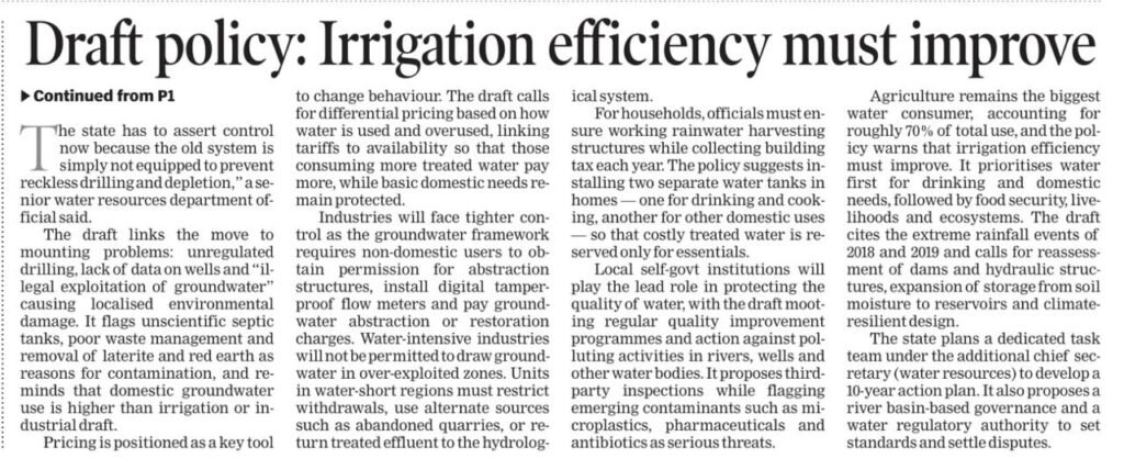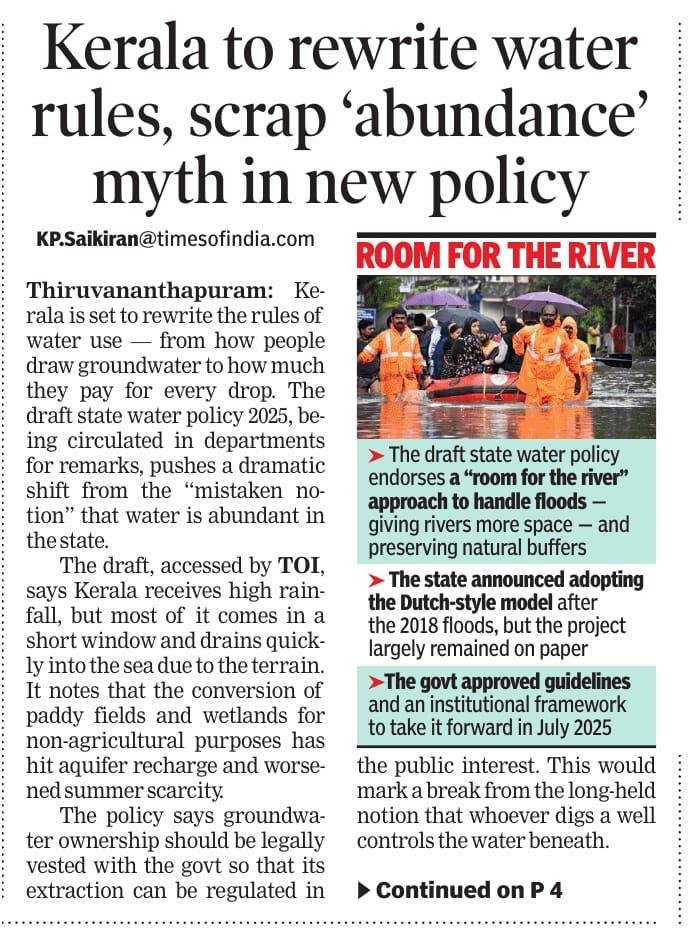 കൊച്ചി: കേരളത്തിലെ ഭൂഗർഭജലത്തിന്റെ ഉടമസ്ഥാവകാശം നിയമപരമായി സർക്കാരിൽ നിക്ഷിപ്തമാക്കാൻ ശുപാർശ ചെയ്യുന്ന കരട് സംസ്ഥാന ജലനയം 2025 ഗാർഹിക ഉപഭോക്താക്കൾക്കും വ്യവസായങ്ങൾക്കും കടുത്ത നിയന്ത്രണങ്ങൾ ഏർപ്പെടുത്തുന്നു. ടൈംസ് ഓഫ് ഇന്ത്യ അസിസ്റ്റൻ്റ് എഡിറ്റർ കെ .പി. സായ് കിരണിൻ്റെ റിപ്പോർട്ട് ഞെട്ടിക്കുന്നതാണ്.
