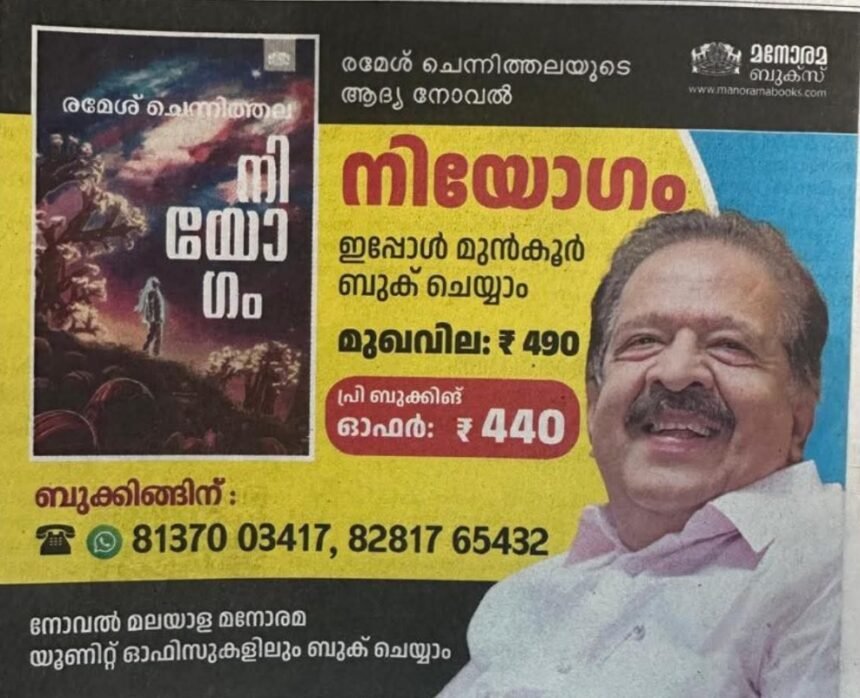 തിരുവനന്തപുരം: രാഷ്ട്രീയ ചാണക്യൻ എന്നറിയപ്പെടുന്ന രമേശ് ചെന്നിത്തല ഇപ്പോൾ പുതിയൊരു വേഷപ്പകർച്ചയിലാണ് – ഒരു നോവലിസ്റ്റ്. അദ്ദേഹത്തിന്റെ കന്നി നോവലായ ‘നിയോഗം’ വായനക്കാരിലേക്ക് എത്താൻ ഒരുങ്ങുകയാണ്. മനോരമ ബുക്സ് പ്രസിദ്ധീകരിക്കുന്ന ഈ പുസ്തകം അമേരിക്കയും കേരളവും പശ്ചാത്തലമാക്കി രണ്ട് കാലഘട്ടങ്ങളുടെ കഥയാണ് പറയുന്നത്.