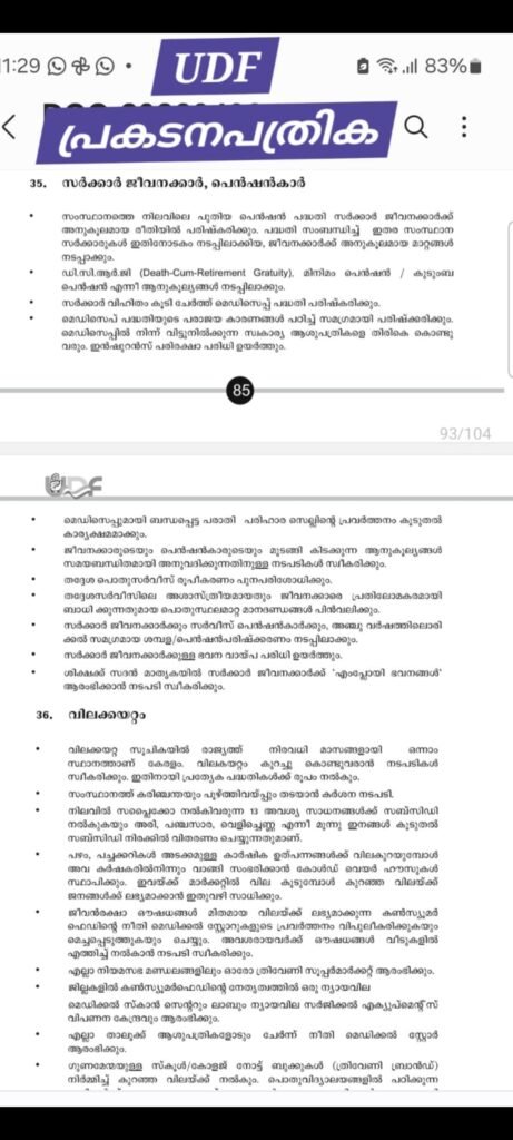 Home » Blog » ജീവനക്കാർക്കും പെൻഷൻകാർക്കും കൈനിറയെ ആനുകൂല്യങ്ങൾ; മുടങ്ങിക്കിടക്കുന്ന 1 ലക്ഷം കോടിയുടെ കുടിശിക തീർപ്പാക്കും; യു.ഡി.എഫ് പ്രകടന പത്രിക പുറത്ത്