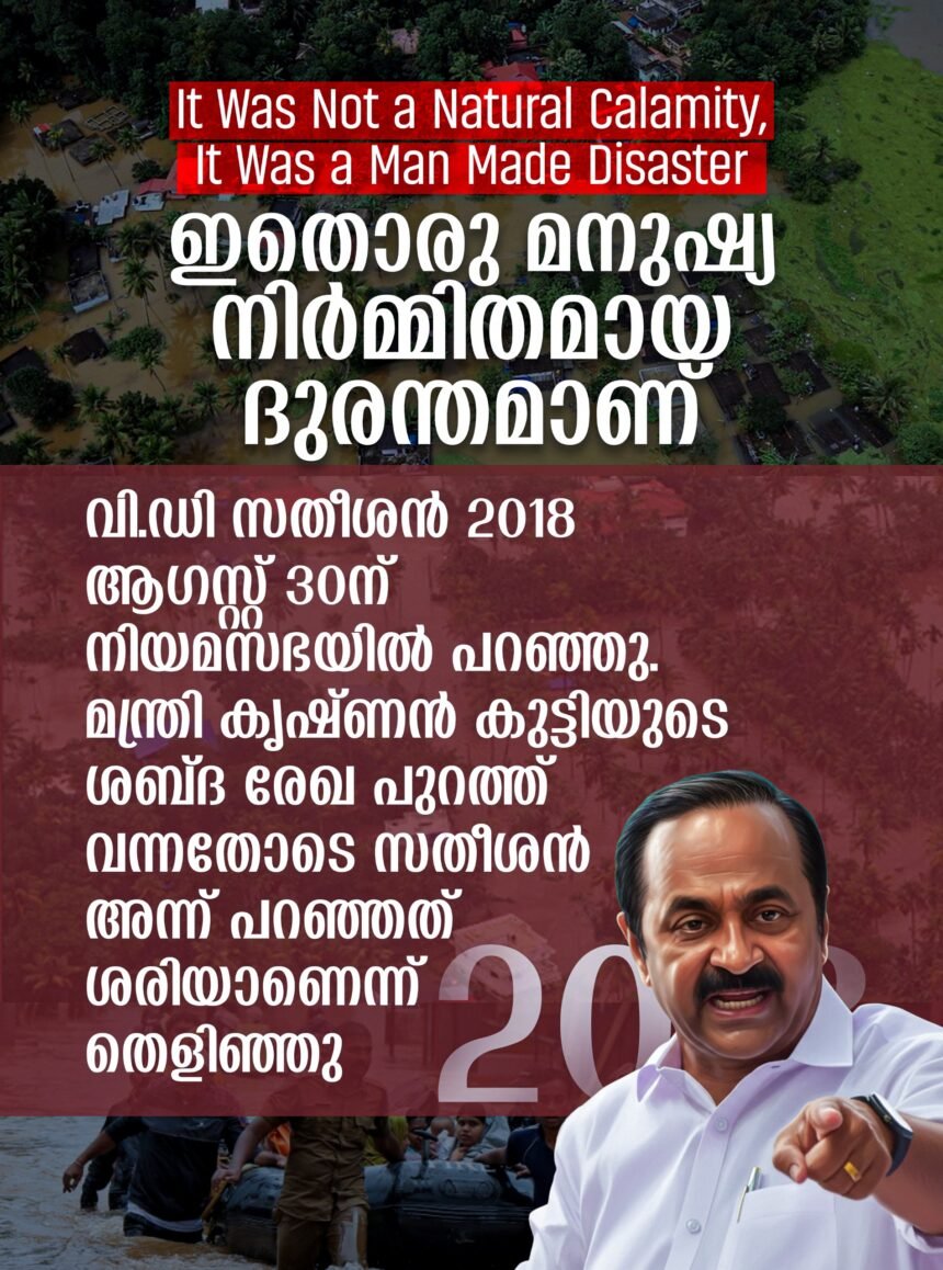 2018 ഓഗസ്റ്റ് 30-ന് നിയമസഭയിൽ നടന്ന പ്രത്യേക ചർച്ചയിൽ വി.ഡി സതീശൻ ഉന്നയിച്ച “ഇതൊരു മനുഷ്യനിർമ്മിത ദുരന്തമാണ്” എന്ന വാദം അന്ന് ഭരണപക്ഷം തള്ളിക്കളഞ്ഞിരുന്നു. എന്നാൽ സ്വന്തം മന്ത്രിസഭയിലെ അംഗത്തിന്റെ തന്നെ വെളിപ്പെടുത്തൽ പുറത്തുവന്നതോടെ സർക്കാരും ജലവിഭവ വകുപ്പും പ്രതിക്കൂട്ടിലാവുകയാണ്. ഉദ്യോഗസ്ഥരും കരാറുകാരും തമ്മിലുള്ള അവിശുദ്ധ കൂട്ടുകെട്ടാണ് ലക്ഷക്കണക്കിന് ആളുകളെ കണ്ണീരിലാഴ്ത്തിയ പ്രളയത്തിന് പിന്നിലെന്ന് വ്യക്തമാക്കുന്നതാണ് ഇന്ന് പുറത്ത് വന്ന മന്ത്രിയുടെ ശബ്ദരേഖ.