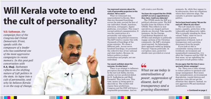 TAGGED: Kerala Election, Kerala leader, Kerala Politics, National Herald, UDF, V.D. Satheesan, കേരള നിയമസഭാ തെരഞ്ഞെടുപ്പ്, കേരള രാഷ്ട്രീയം, കോൺഗ്രസ്, പിണറായി വിജയൻ, യുഡിഎഫ്, വി.ഡി. സതീശൻ, വി.ഡി. സതീശൻ അഭിമുഖം, വ്യക്തിപൂജ