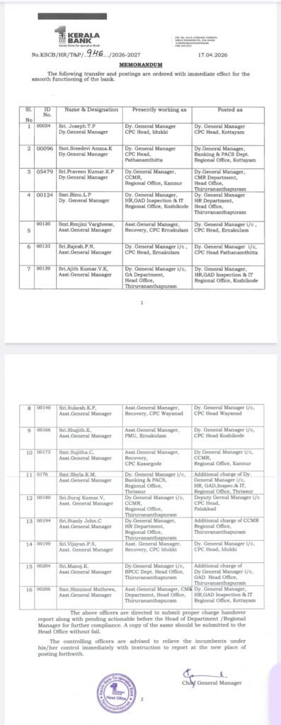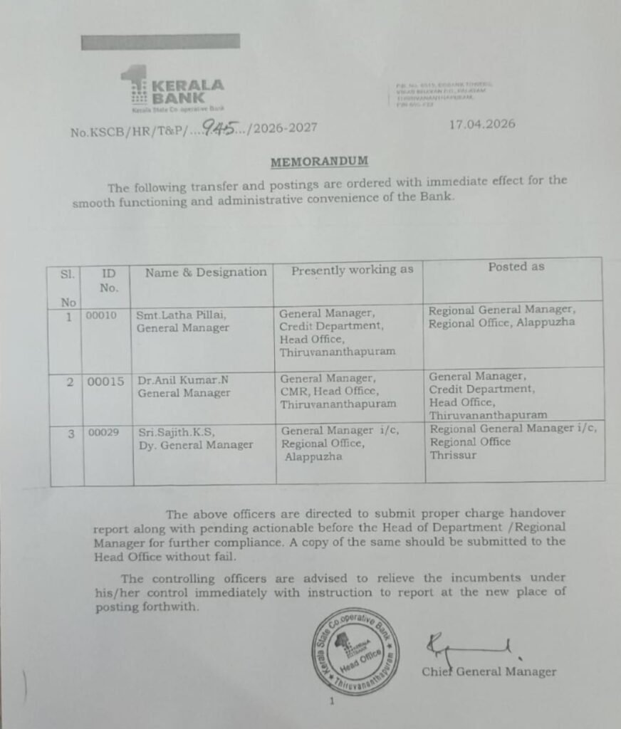 TAGGED: Banking News, CEO Action, Election Code Violation, Election Commission Action, Kerala Bank, Kerala Election 2026, Kerala leader, Kerala Politics, Left Syndicate, Political Corruption Kerala, Transfer Mela, കേരള ബാങ്ക്, തെരഞ്ഞെടുപ്പ് പെരുമാറ്റചട്ട ലംഘനം